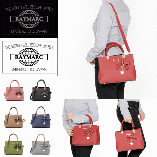 ショルダーバッグ ロイヤル ローズ レディース リボンチャーム付 ハンドバック 2way 通勤 OL トートバッグ おしゃれ かわいい 大人 黒 白 春 夏 秋 冬 レザー 一泊旅行 肩掛け 斜めがけ かばん PU レザー プレゼント 誕生日 通学 高校生 入学 入園 卒業 RAYMARC ブランド